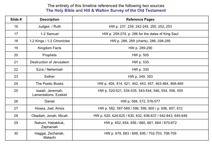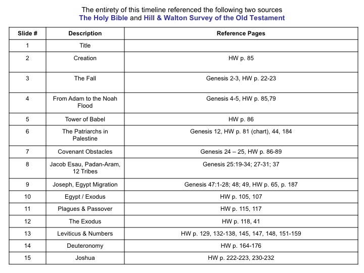 The Following is a Timeline of the Old Testament sourced from the Holy Bible and the Survey of the Old Testament by Hill and Walton. This was a project I had the opportunity of putting together for my studies in surveying the Old Testament. Admittedly, this was a huge challenge; however, with much prayer, patience, creativity, and hard work I was able to complete it.